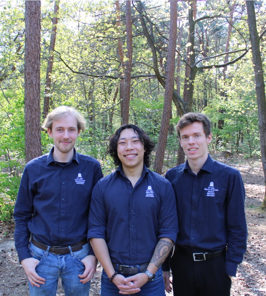 Lucas de Brouwer (penningmeester), Gillian Mok (voorzitter) en Niels van Eenennaam (secretaris)