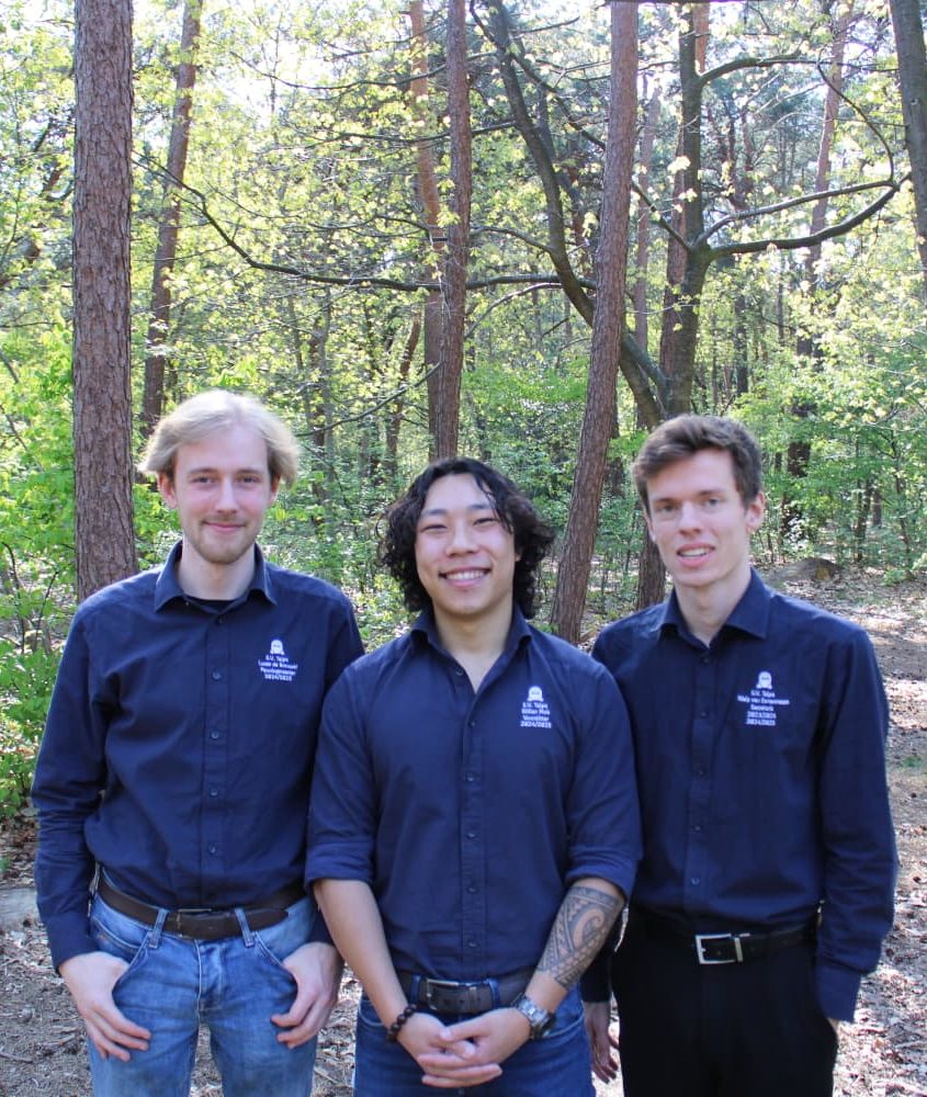 Lisa Prins (penningmeester), Sander Geerlings (voorzitter) en Niels van Eenennaam (secretaris)